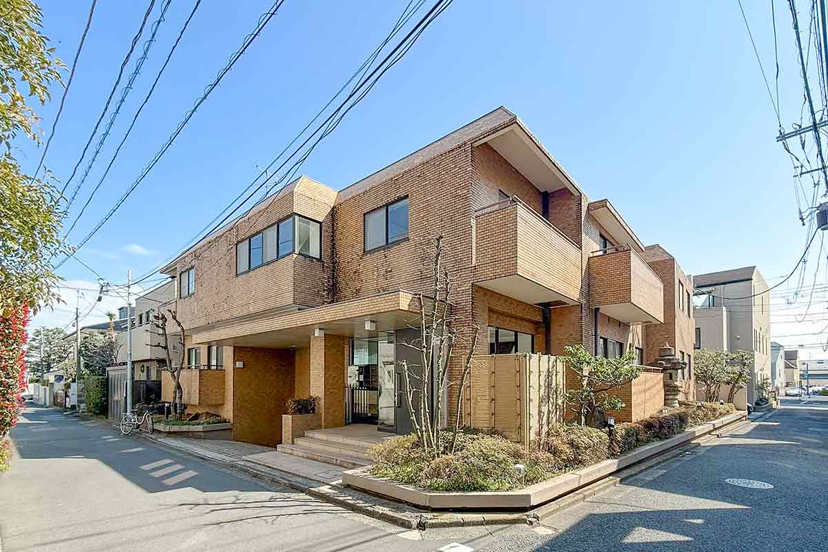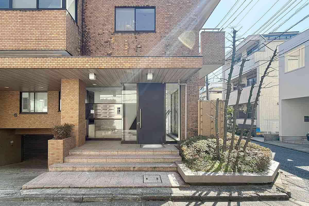 駅前の賑やかさは落ち着いた、目黒通り裏手のレンガ壁の建物がご紹介するマンション。