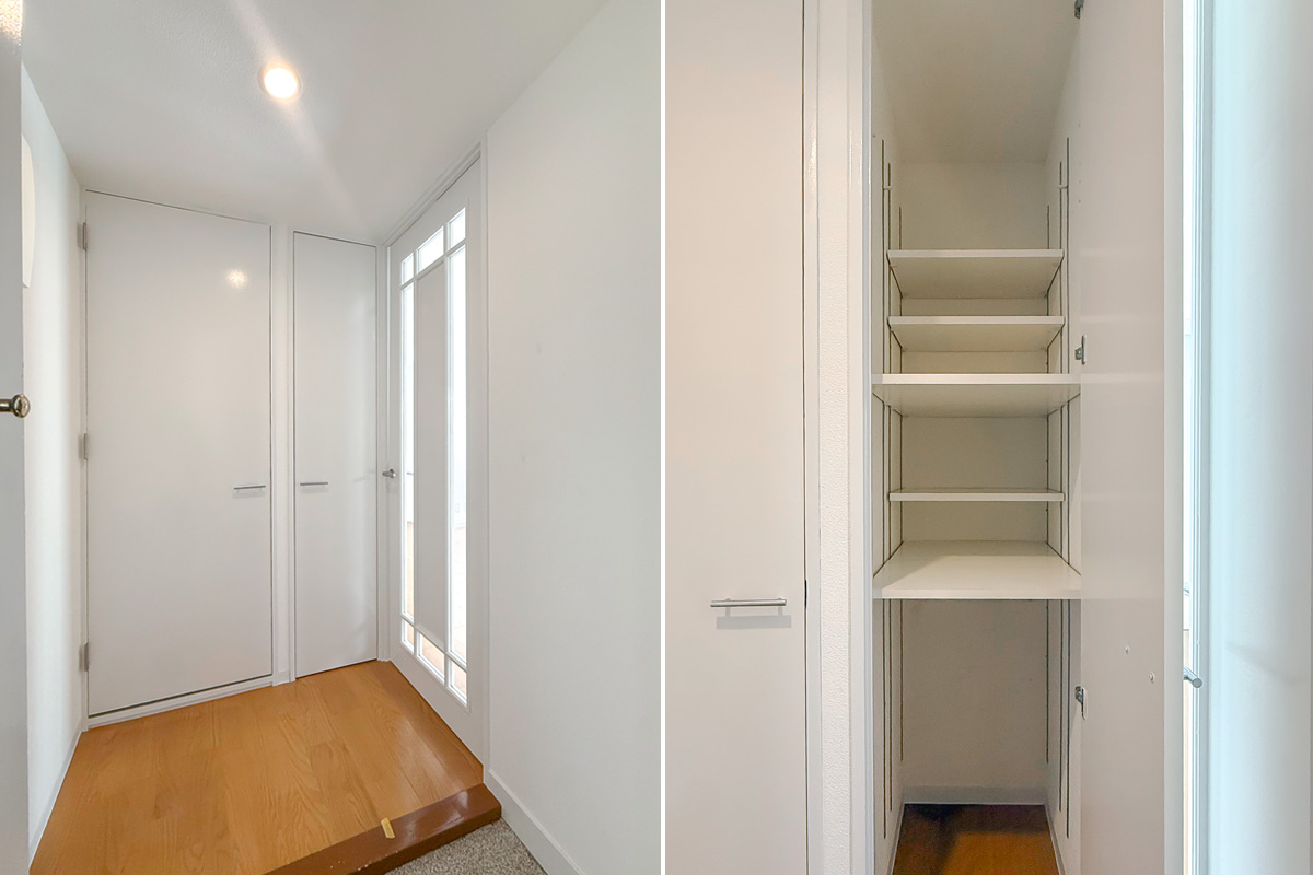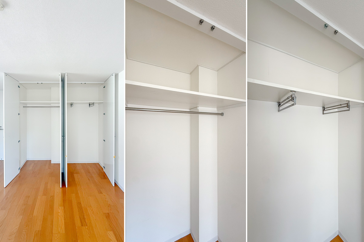 しっかりとした容量のクローゼットには2種のラックがあり、縦向き横向き、異なる収納の仕方ができます。