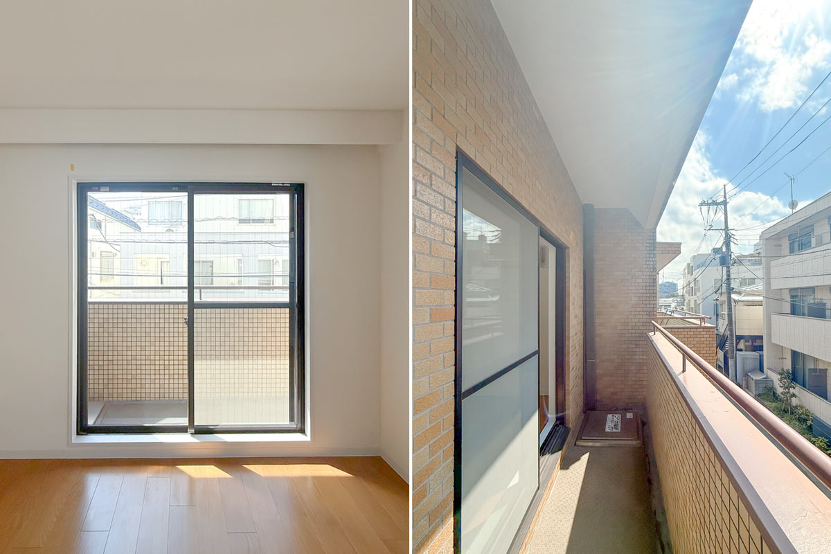 こちらはバルコニーも付いていて、北西側の二面採光で午後は陽射しが期待できそう。