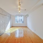 お部屋はダークブラウン色のフローリングで落ち着いた印象です。 南側のバルコニーからの景色は空も見え、圧迫感は感じませんでした。