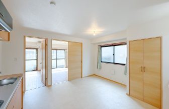 間取りは、約4.5帖+5.5帖+6帖の洋室3間と7.5帖のダイニングキッチンで、細かくお部屋が分かれています。6帖の洋室はエアコンが設置できない為、ウォークインクローゼットとして使用してみてもいいかもしれませんね。