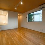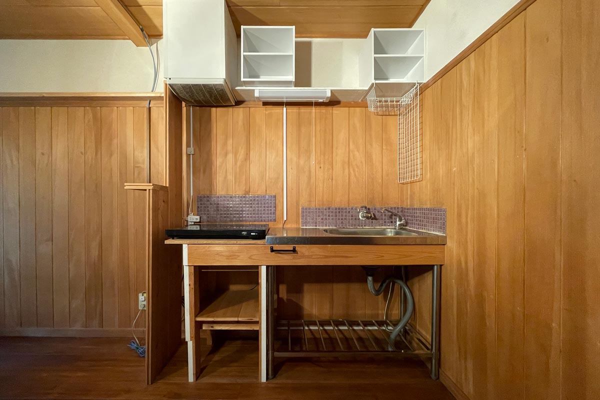 現状は、床だけでなく、天井や壁も板張りで、浴室のドアは濃紺に塗られていたり、他のアパートでは見られない、自由を感じる内装です。