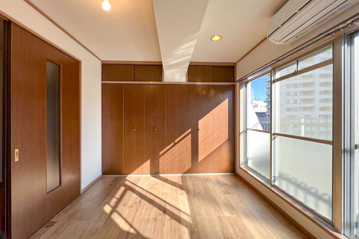 室内は窓から差し込む光でとても明るく、風通りも良いです。収納量豊富なクローゼットには細かく仕切られた棚に、ハンガーラックも付いているので使い分けができそうですね。