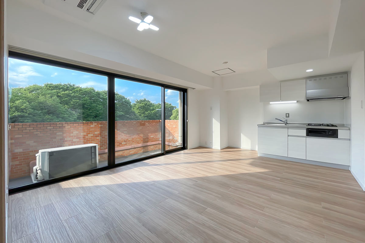 自然教育園に面しており抜け感も良く、室内からも緑がよく見えとても癒される眺望!