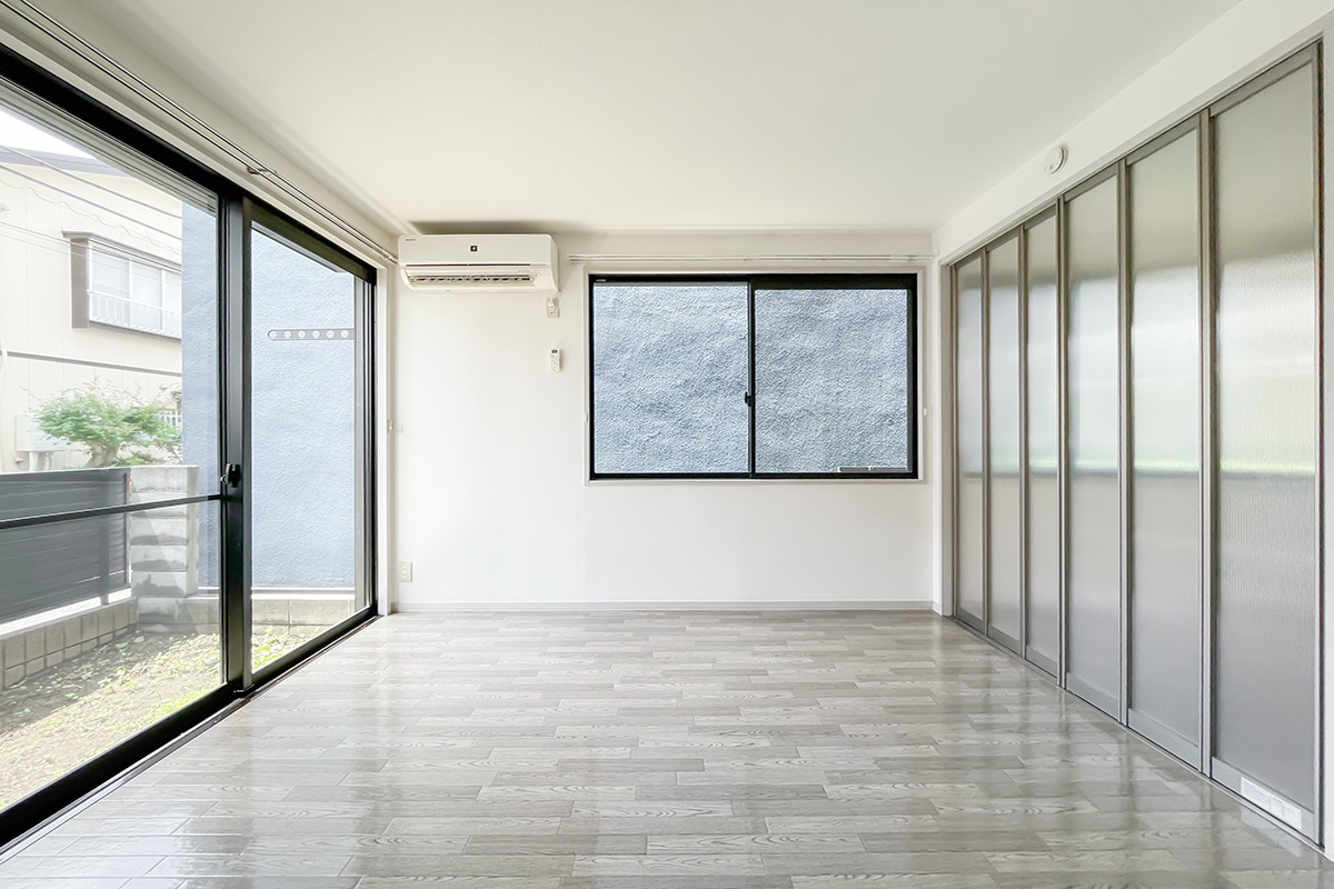 学校が前にあり、校内の樹木が借景になってくれるお部屋です。