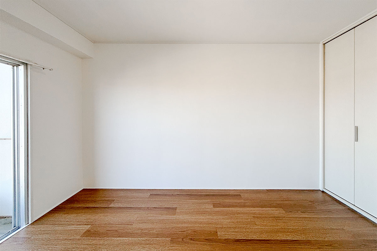 東側の洋室には壁一面の収納があり、こちらがかなり大容量。