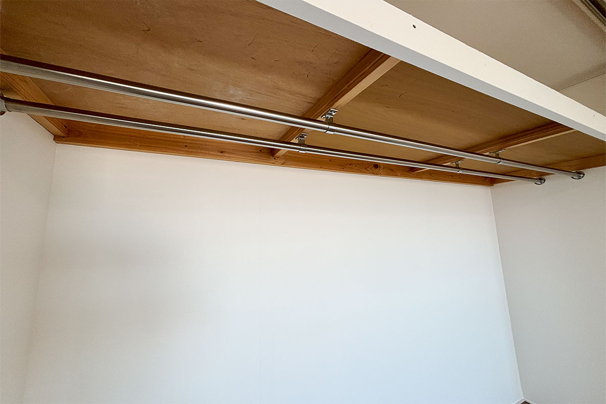 前後にハンガーパイプがあり、奥行きもたっぷりなので2人暮らしにも頼もしい収納量です。