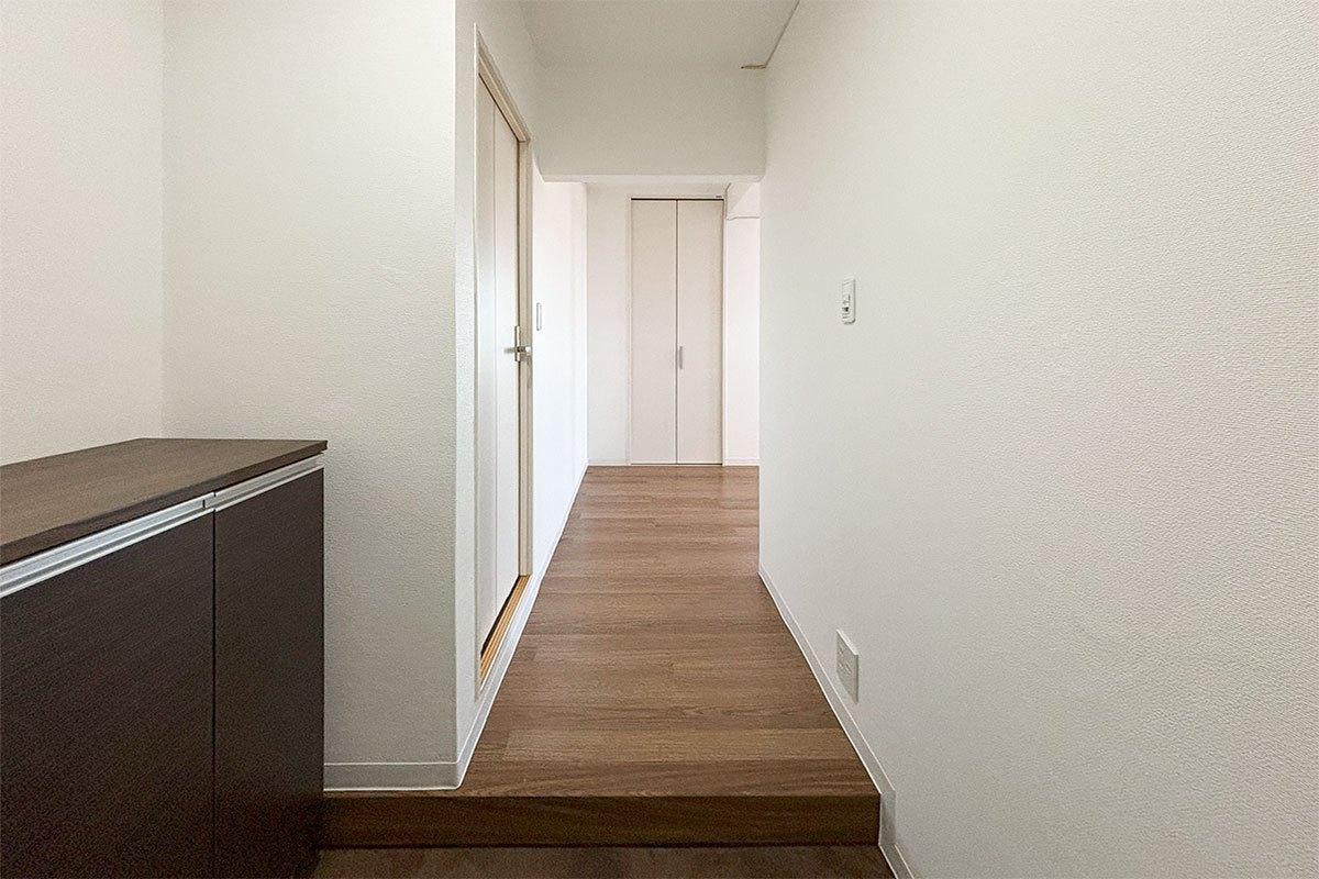 室内は玄関を入ってリビングダイニング、スライドドアを隔てて、洋室2部屋という間取り。