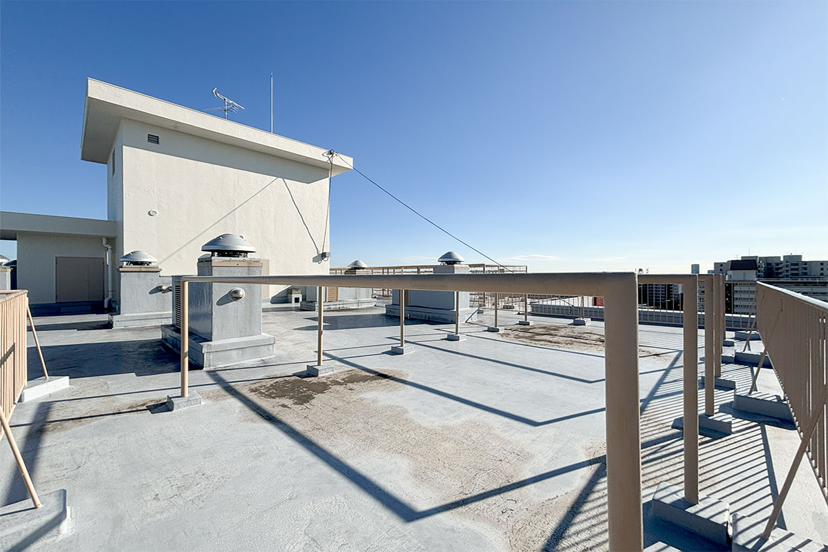 ちなみに屋上は共用の物干しスペースになっていて、シーツなどの大判のものもパリッと気持ちよく乾かすことができます。