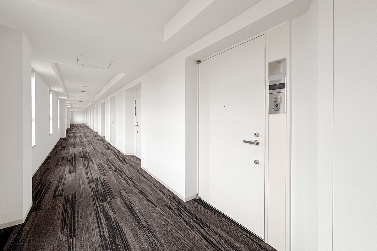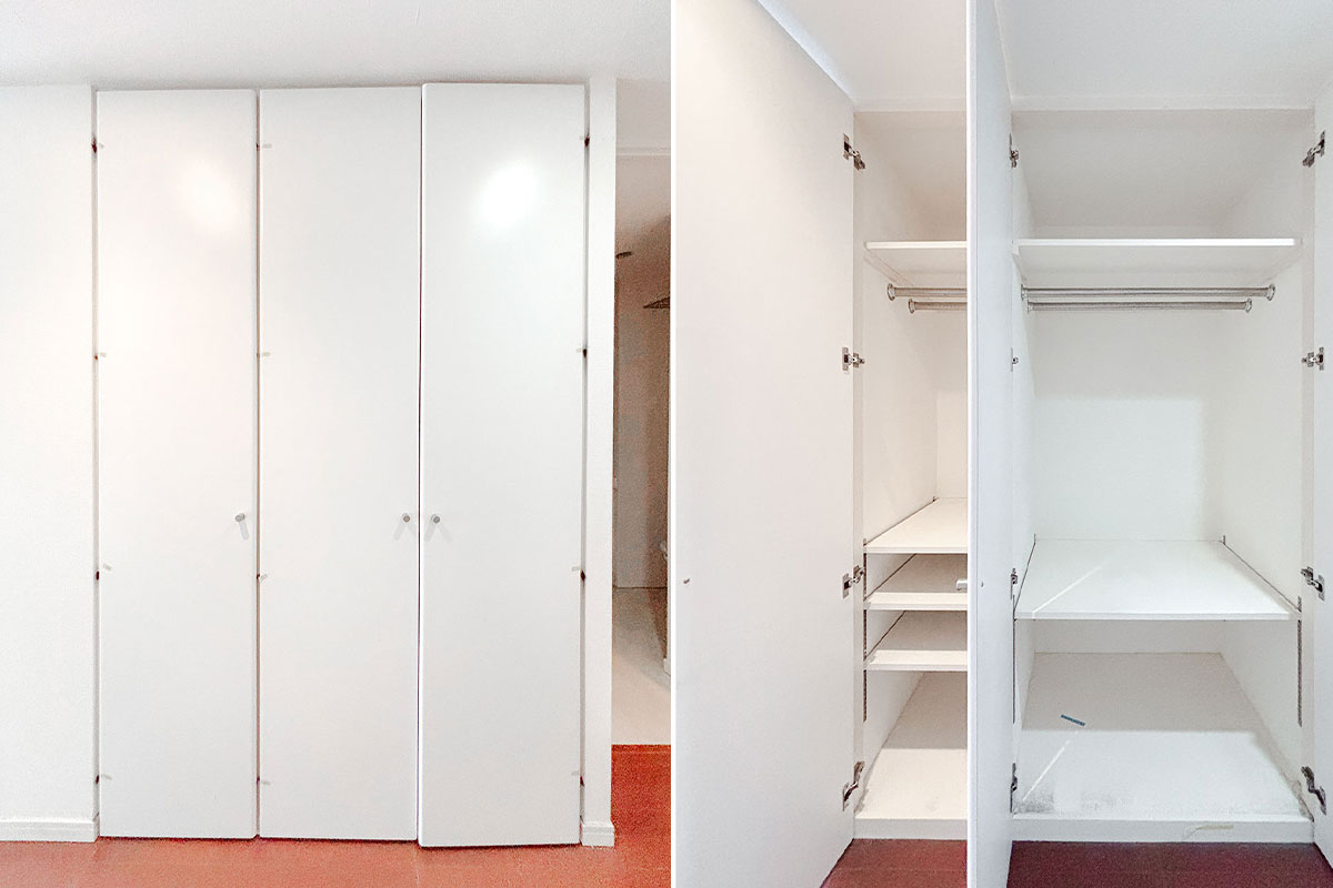 廊下沿いにクローゼットがありますが、物量に応じて室内にも収納スペースを設けるとよさそう。