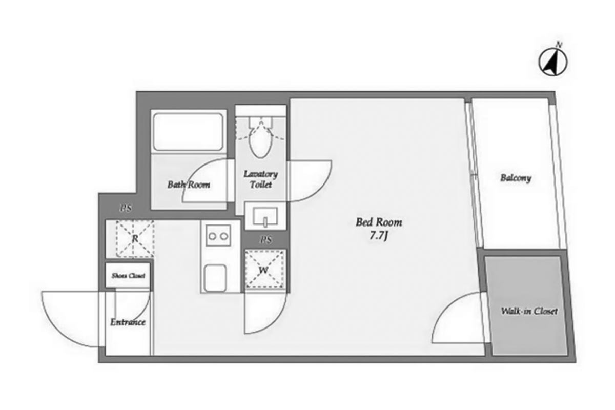 ウォークインクローゼットがあり、部屋はコンパクトながらすっきりとした空間が目指せそうな造りです。