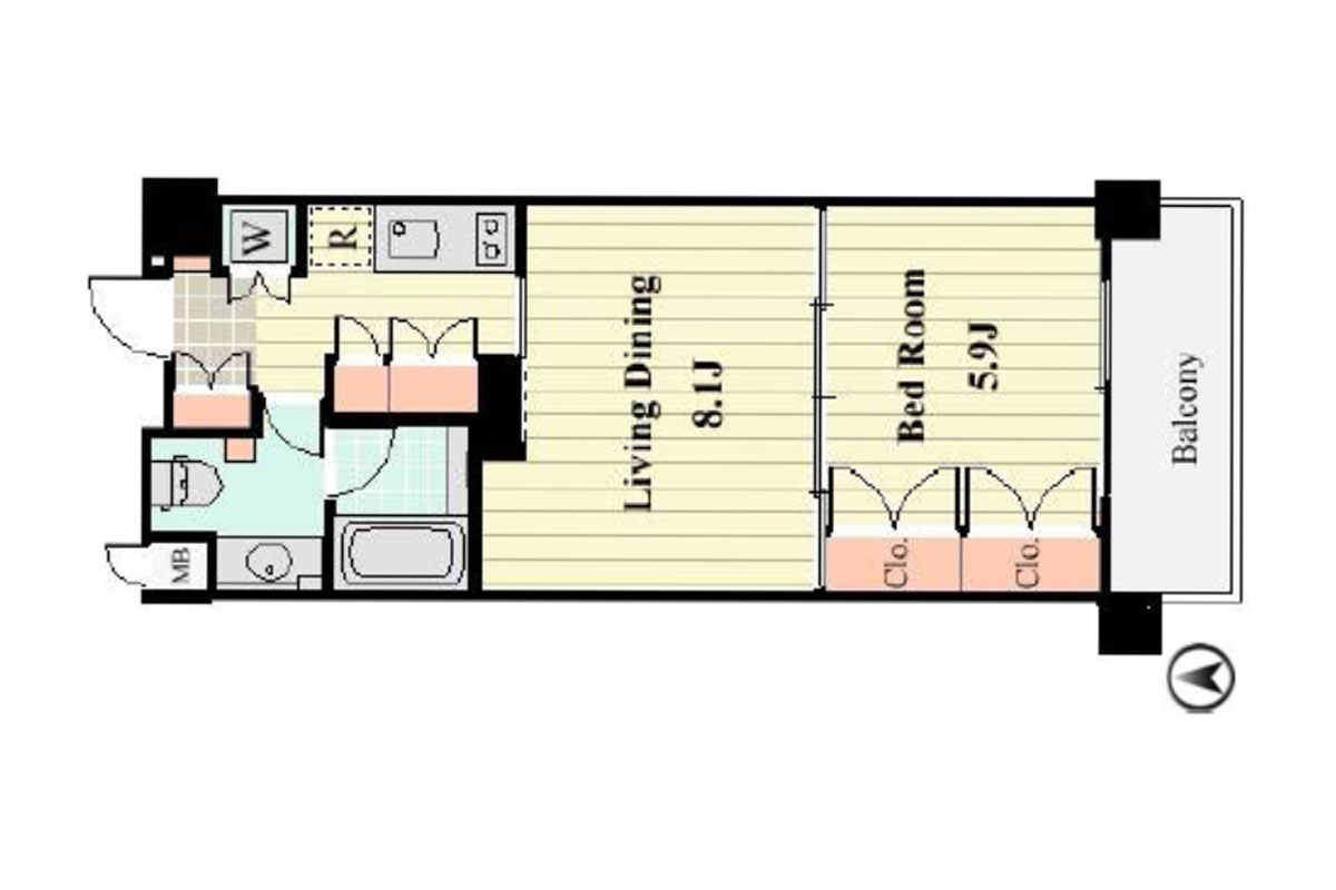 お部屋は6階、約38㎡の1LDK。