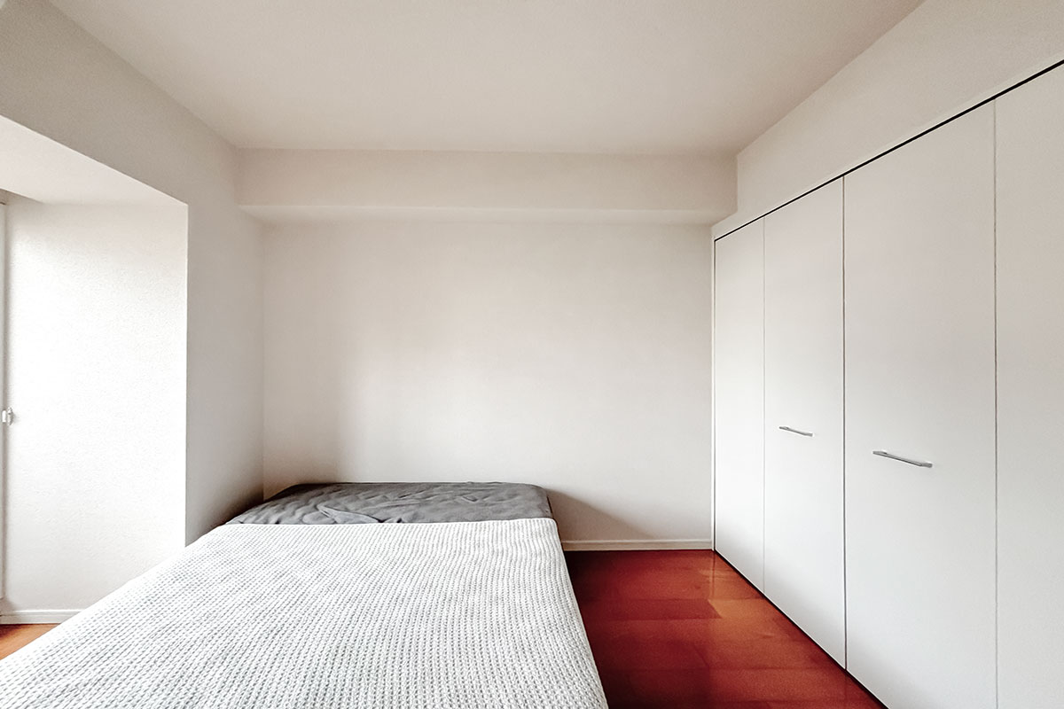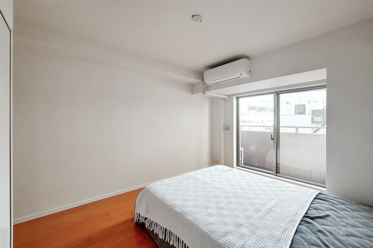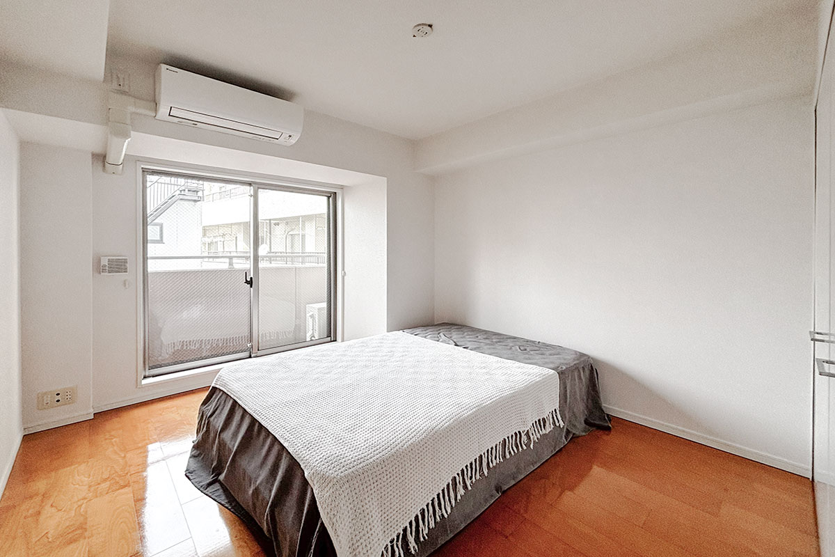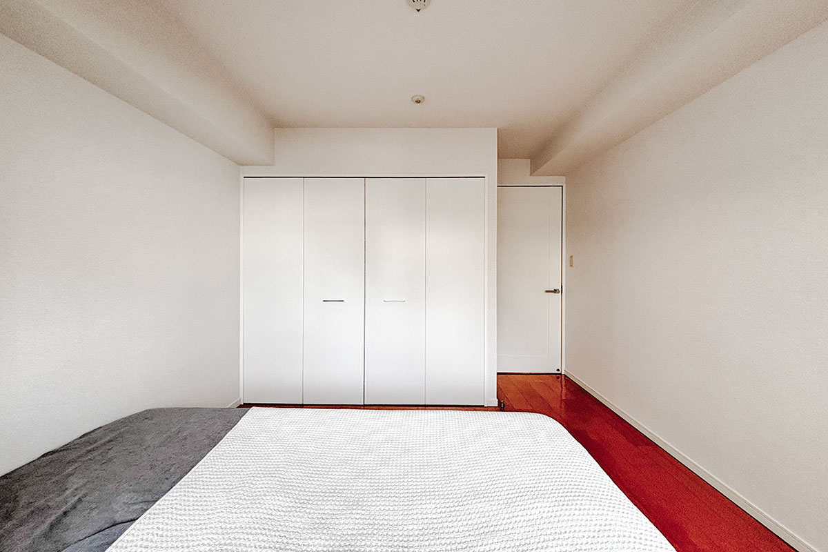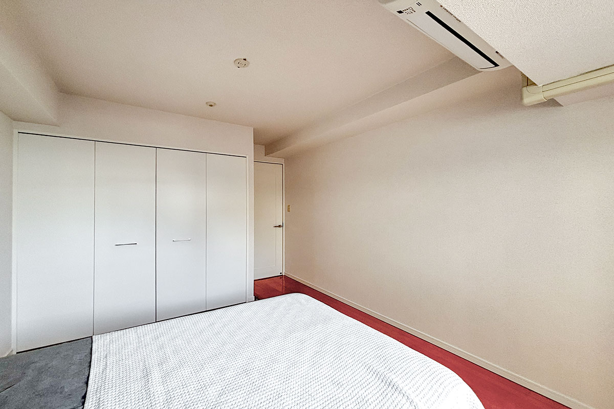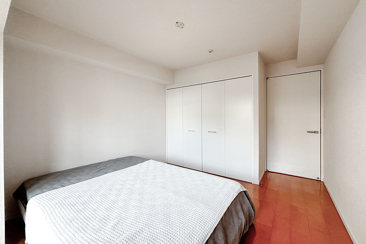 洋室はダブルベッドも配置OK!2人暮らしだと収納のボリュームは少々コンパクトかもしれません。