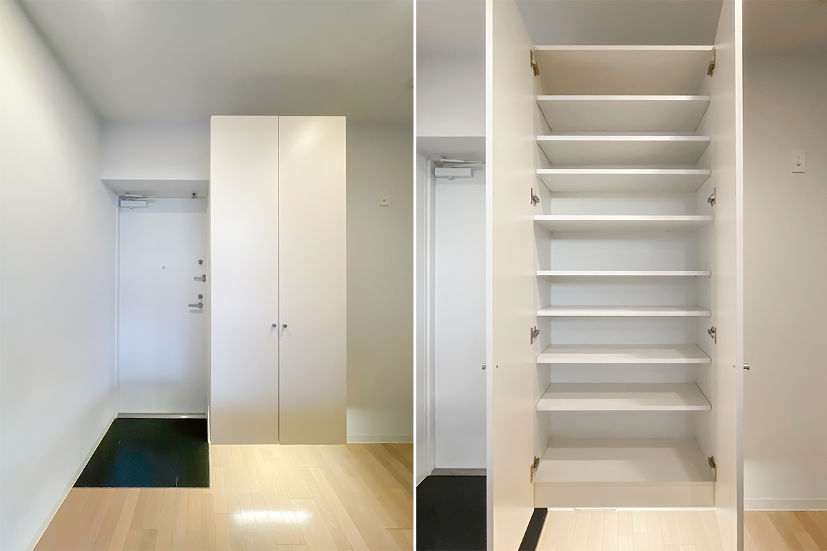 動かすことはできませんが、箱より奥はベッドルームにするといった区切りに一役買ってくれています。