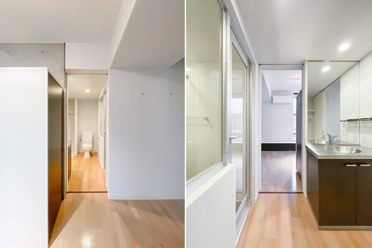 部屋の垣根を越えて、建物自体に包み込まれているような感覚になる物件。