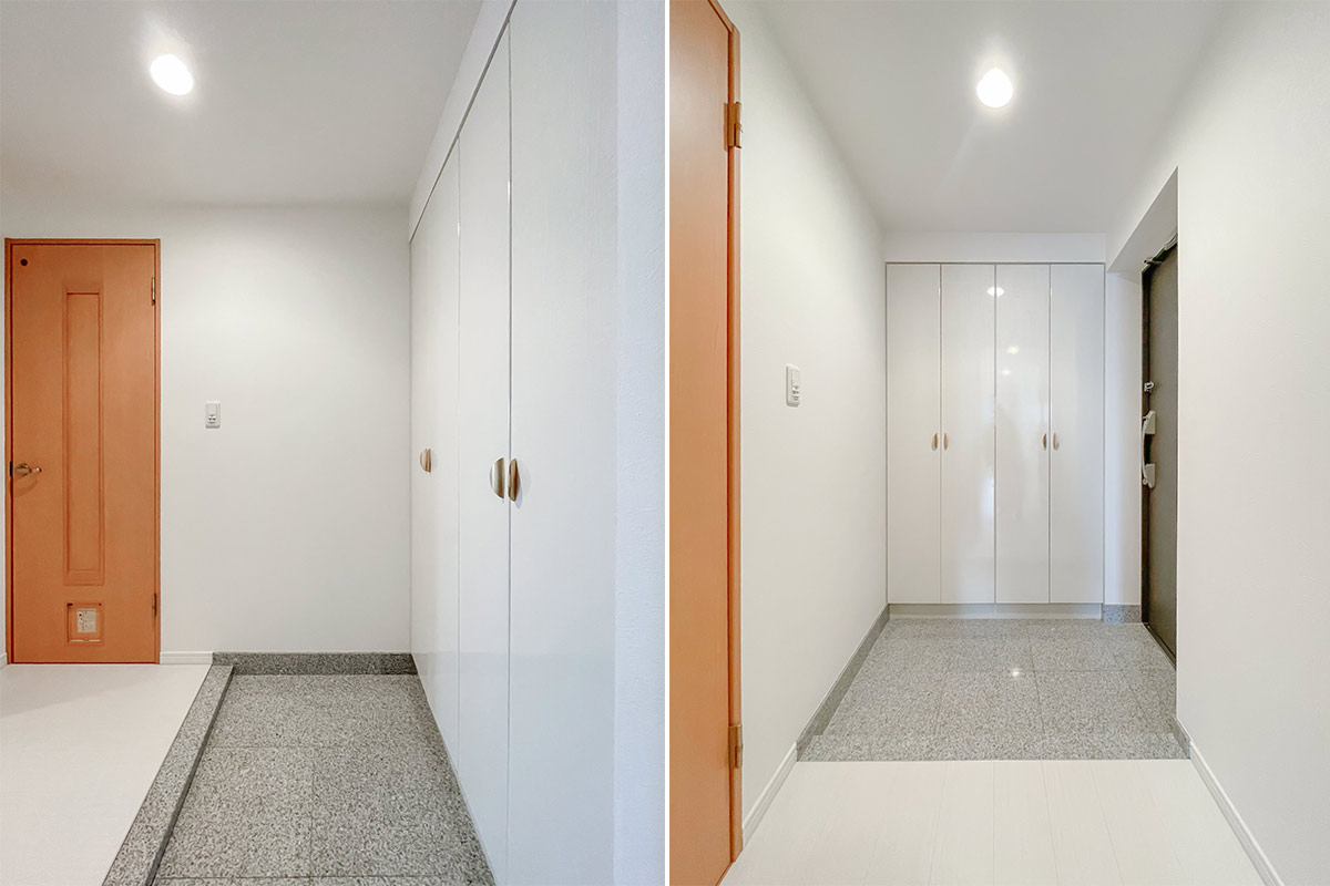 リビング・廊下にクローゼットが2箇所、玄関収納も大きく、洗面所にも収納スペースがたっぷり。